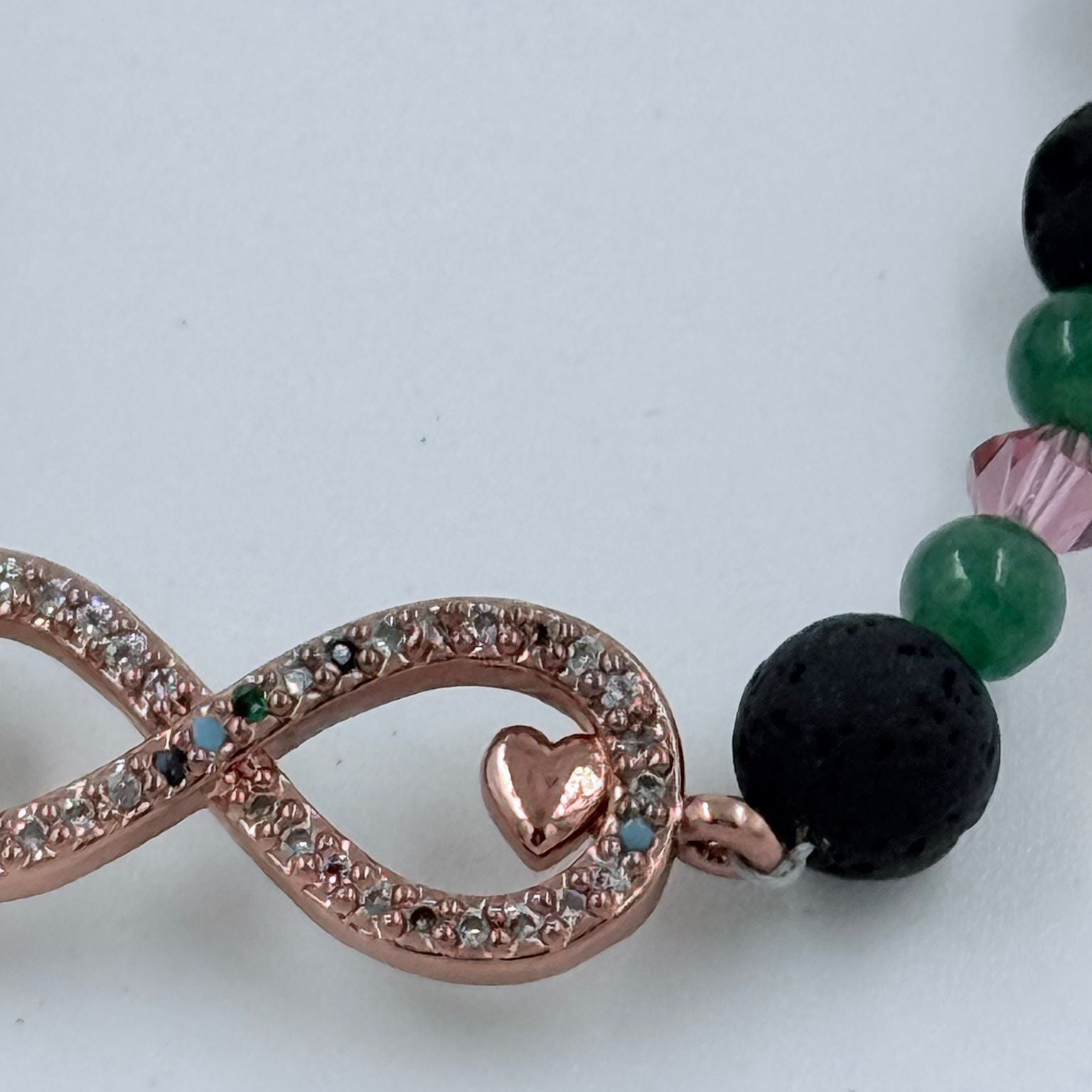 Infinity Earth ist ein zartes, liebevoll designtes Armband, das wie geschaffen ist für Freundschaft und Herzensmenschen. Die feinen Moosachat-Perlen bringen Ruhe, Balance und dieses Gefühl von „Ich bin bei dir“, während die Lavaperle Stärke und Erdung schenkt.